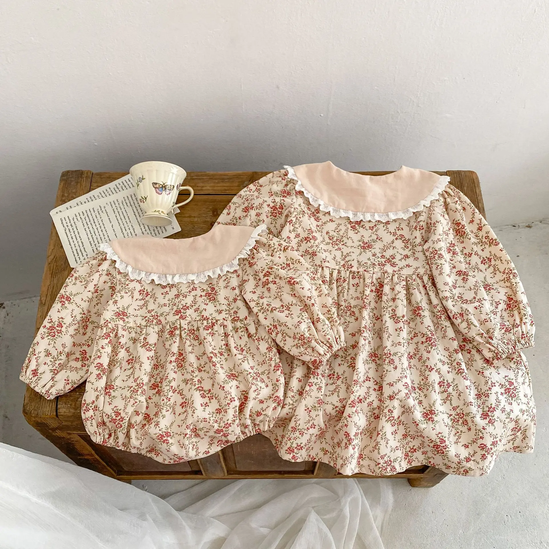 Autumn Kids Baby Girls Long Sleeve Flower Printing Princess Dress Sweet Baby Girls Doll Collar Dress Children Clothes Dress
