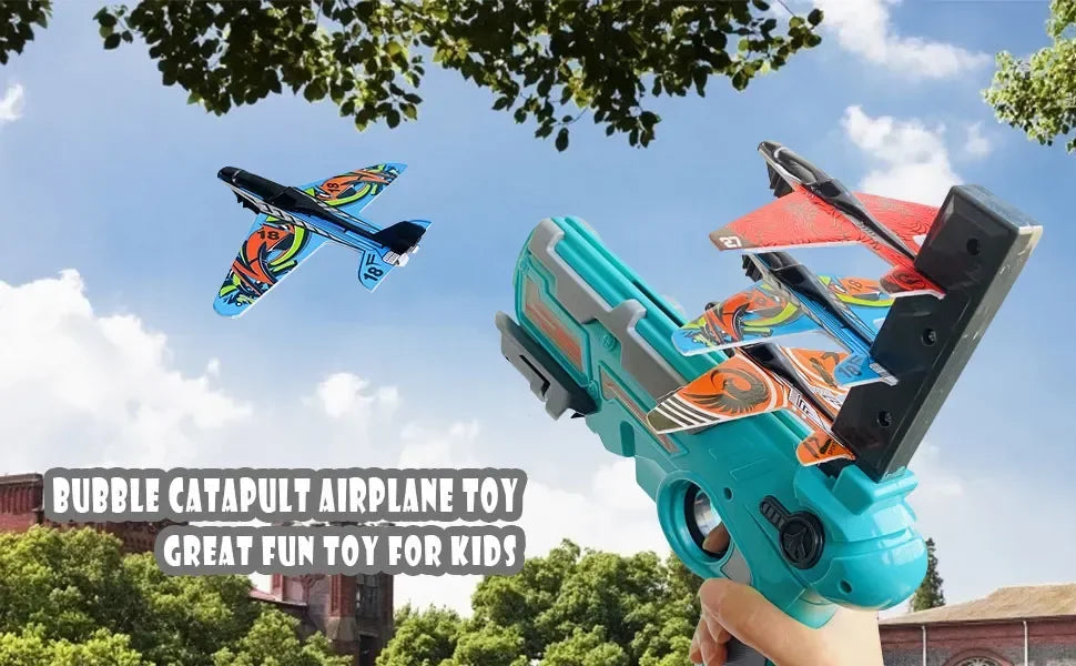 Airplane Toy For Kids Boys 4 5 6 7 8 9 10, Bubble Catapult Plane Toy Airplane, One-Click Ejection Model Foam Airplane Shooting Game, Toys with Glider Airplane Launcher for Birthday Party Favors
