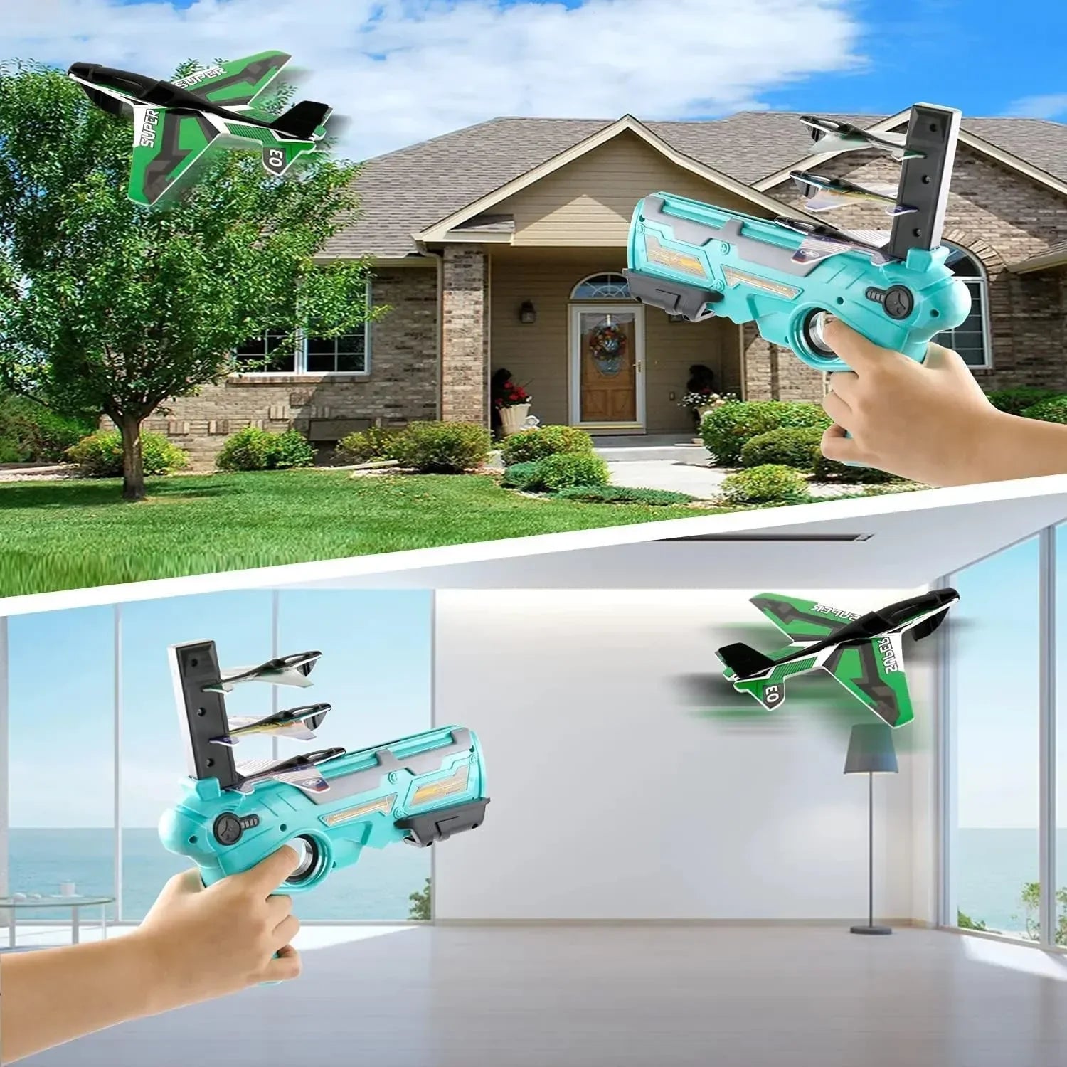 Ejection Aircraft Shooting Game Outdoor Parent-child Sports Toy Boy Gifts Shooting Aircraft Set Plastic Airplane Toys for Kids