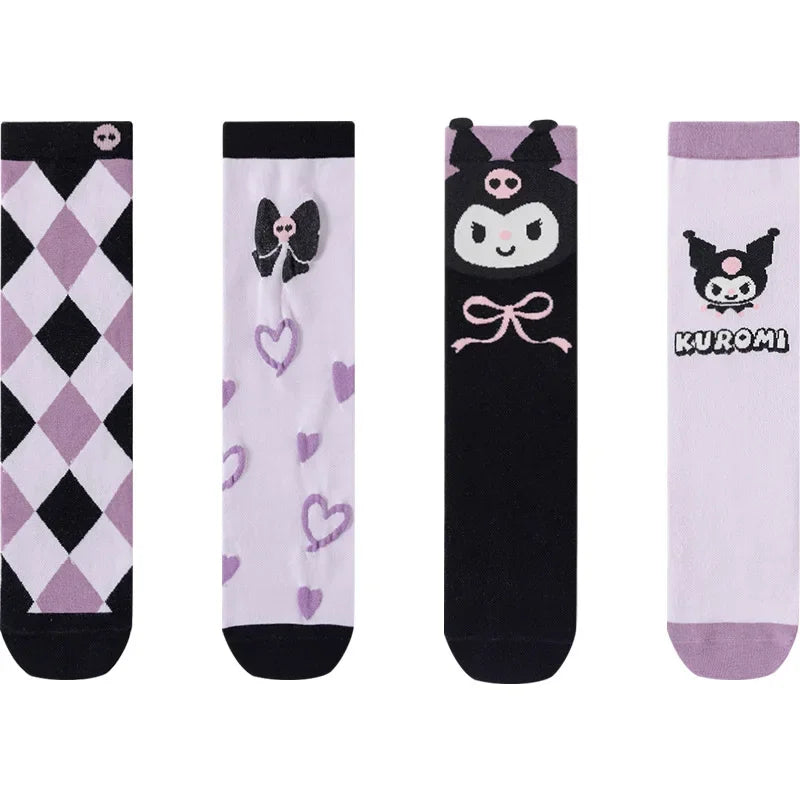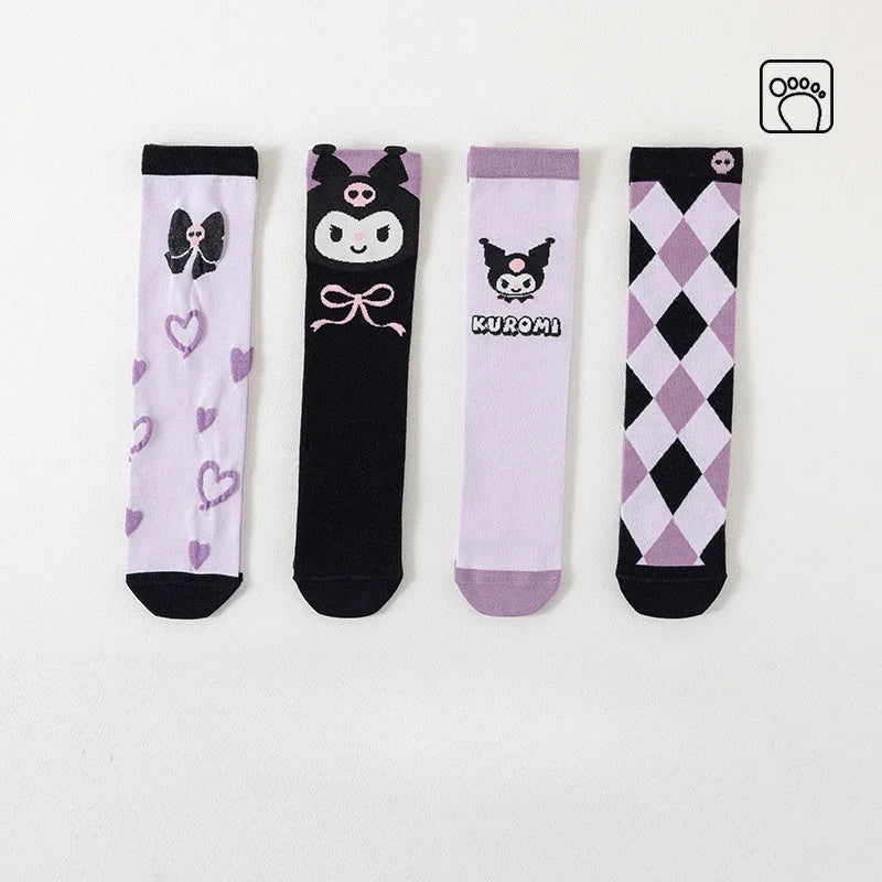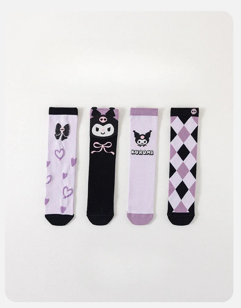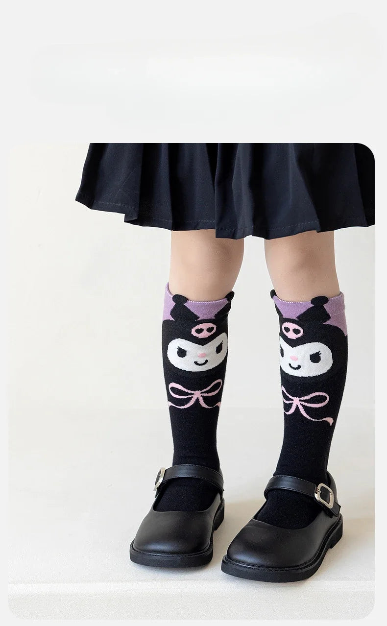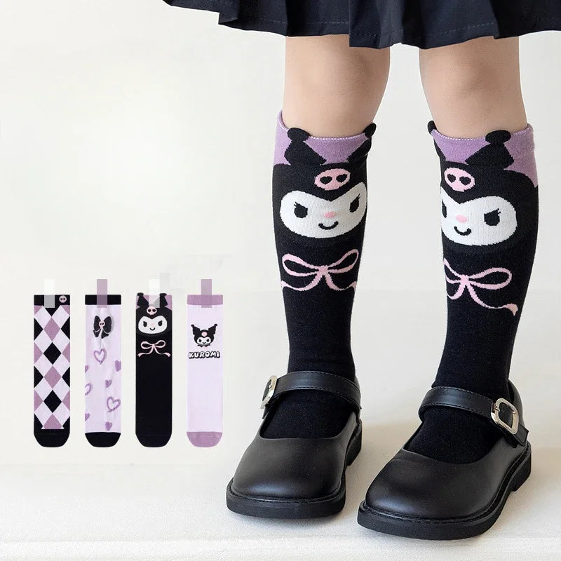 Girls Cute Sanrioed Kuromi Purple Knee Long Socks Kawaii Cartoon Anime Kuromi Children Toddler Middle Tube Socks Gift