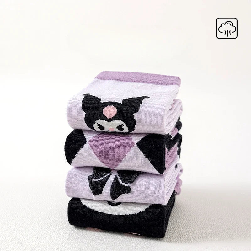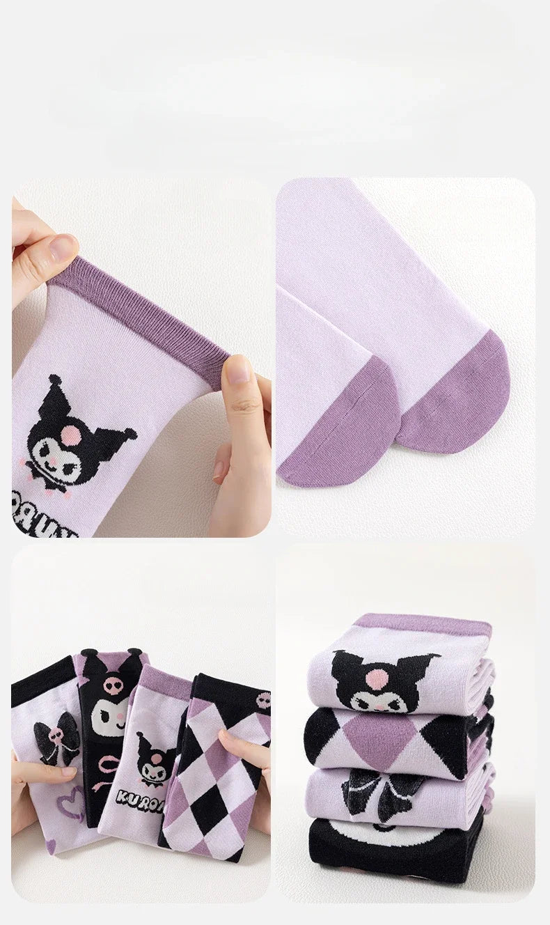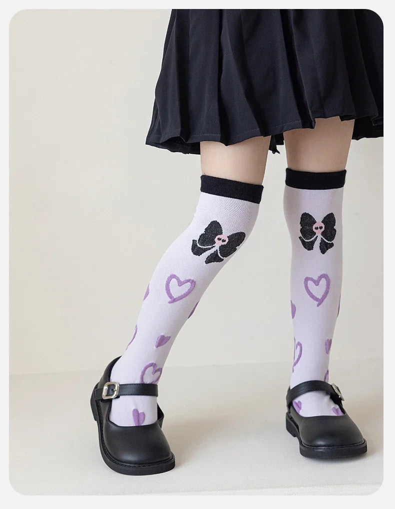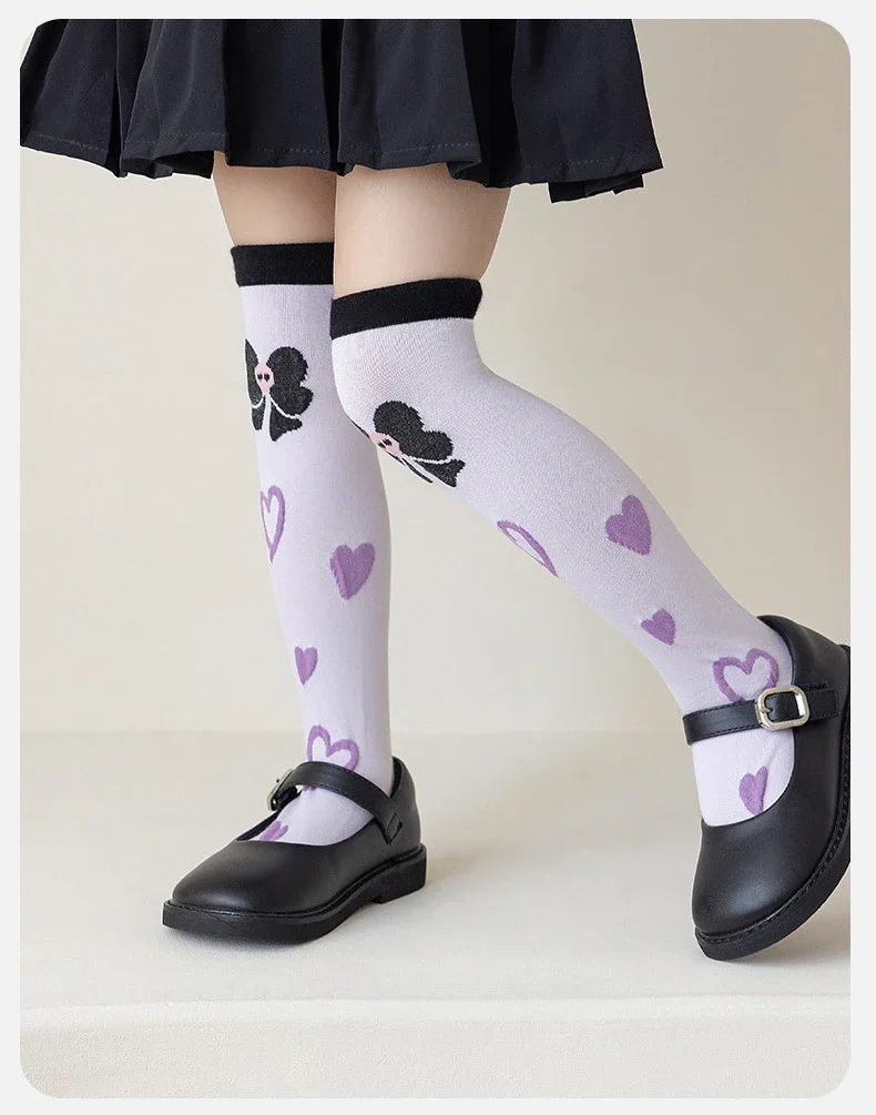 Girls Cute Sanrioed Kuromi Purple Knee Long Socks Kawaii Cartoon Anime Kuromi Children Toddler Middle Tube Socks Gift