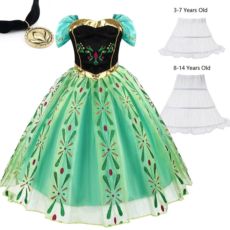 Halloween Snow Queen Elsa Anna Costume For Kids Girls Fancy Birthday Party Gown Princess Dress Carnival Party Children Clothes