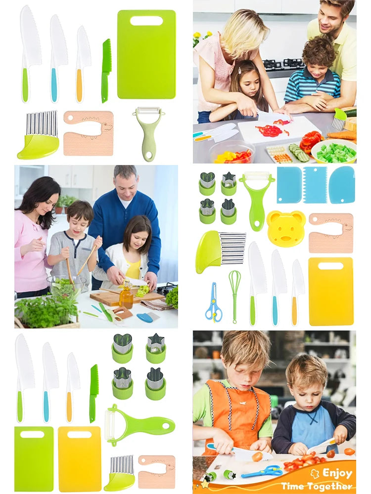 Kids Cooking Cutter Set Kids Knife Toddler Cutter Plastic Cake Fruit Knives Children DIY Peeler Tools Kitchen Accessories