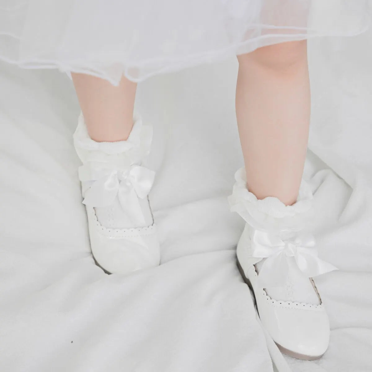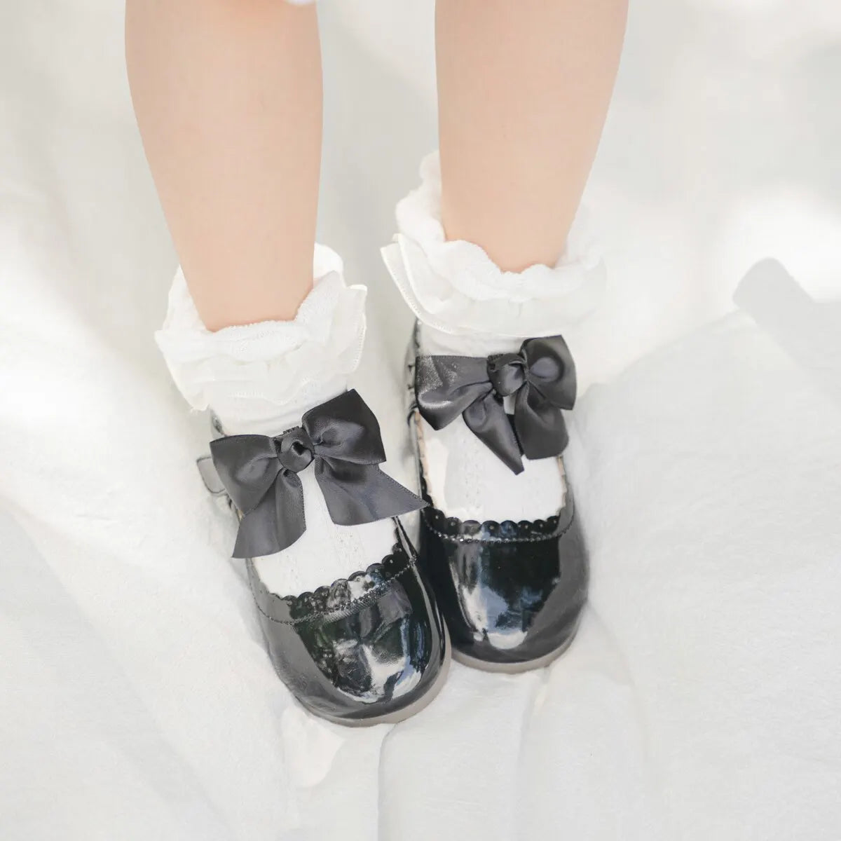Meckior Girls Mary Jane Dress Kids Shoes Ballet Flats Non-slip Girls Party School Bowknot Children Princess Leathers Shoes