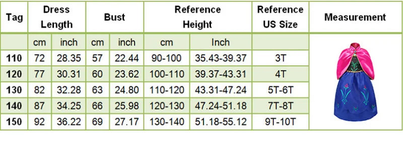 Princess Costume Girl Anna Dress 2 3 4 5 6 8 10 Years