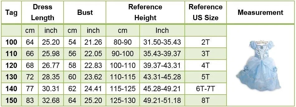Dress Name: Rapunzel Costume for Kids Girl Cinderella Belle Dress Up Collection Children Birthday Party Princess Dress Girl Carnival Clothes
