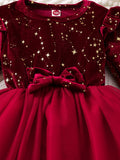 Toddler Girl Party Dress Autumn Winter 1-8 Years Children Christmas And New Year Princess Dress Red Velvet Gown Stars Mesh Dress